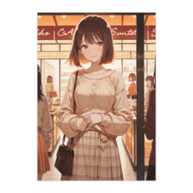ポスター - B2この商品はpixivFACTORYで作られた商品です。サンプル画像は完成イメージのため、実物と異なる場合があります。 あたたかな灯りが広がるカフェ前に佇む、柔らかなベージュコーデの女の子。 ふんわり優しい色合いと、冬らしい街の空気感を閉じ込めたイラスト風ポスターです。 落ち着いて上品な雰囲気で、どんなお部屋にも馴染む一枚です。