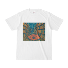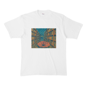 Tシャツ - XL - 白※この商品はpixivFACTORYで作られた商品です。サンプル画像は完成イメージのため、実物と異なる場合があります。 使用しているのは、ChatGPTに以下のプロンプトを入力し、生成された画像になります。 「図書館の中、書棚の間などに雪が降っている情景を、ゴッホ風に描いてください。」 (生成された画像には、一部当方で手が加えられている場合があります。)