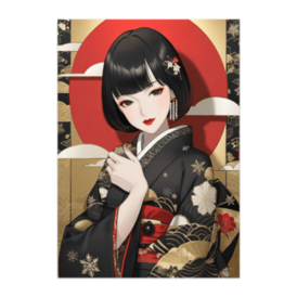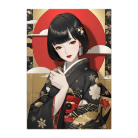 漆黒と金の格式を纏う大和美人ポスター(和風アニメ)