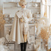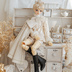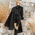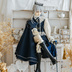 今回使用している本体生地はすべて日本製の生地になります。 サンプル制作後、衿部分の深紺色と黒色の生地は廃盤しまいましたため。 ■黒色生地について 黒色は、生成色と同シリーズの黒色生地に変更して制作いたします。 そのため、サンプル写真と柄が全く異なります。 ■ネイビー生地について ネイビー色は事前にある程度少量生地はお先購入致しました。ご予約数が生地の在庫量を超えた場合は、生成色と同シリーズの生地をネイビー色に染めて制作いたします。 そのため、ネイビー色の基本セットおよびマントは 2種類の生地を使用して制作する可能性がございます。 ただし、同系色のため全体の仕上がりに大きな影響はございませんのでご安心ください。もし生地の違いが気になるお客様は、他のお色をおすすめいたします。