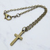 アンティークゴールド ロザリオチャームと模様入りチェーンのシンプルなブレスレット アジャスター追加可