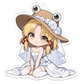 アクリルキーホルダー - 70 x 70 (mm)(キャラのみ)💍💖🐸祀られる土着神の無邪気な愛!諏訪子様(ウエディングver.)アクキーで「俺の嫁」と「ずっと一緒」!🔑 💍💖 守矢神社の真の神、洩矢諏訪子様への無邪気で揺るがない愛を、毎日持ち運べるアクリルキーホルダーに宿しました。 東方Projectの洩矢諏訪子が、トレードマークの蛙の帽子を花嫁風に飾り、清らかなウェディングドレスを纏った、愛らしいチビキャラアクキーとして登場です! このアクキーは、大地を司る神様でありながら、最高の笑顔であなたに**「永遠の愛」**を誓ってくれる、無敵に可愛い花嫁の姿です。 このアクキーは、あなたが諏訪子様と結ばれた**「結婚」の証。あなたの日常に大地の恵みを運び、「ずっと一緒」**という願いを叶える、特別な愛の神具です。 この商品はpixivFACTORYで作られた商品です。サンプル画像は完成イメージのため、実物と異なる場合があります。
