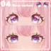 ・本商品はアイテクスチャのみの販売となり、アバター並びに衣装は同梱されていません ・商品の不備などで導入できない場合には是非ご連絡ください ・元の瞳孔やハイライト、瞳の花などはBlendShapesキーなどで非表示にしてください ●サムネ詳細(敬称略) 『ぐ~たら部屋着』🫧Room Wear🫧(7アバター対応) 著 Rabbit Luvit https://rabbit-luvit.booth.pm/items/7738474 Curly Short Hair 15アバター対応 販売セール 著 mochipun https://mochipun.booth.pm/items/7674291