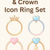 ジュエルハート&クラウン アイコンリング4点セット – ゴールド×宝石風・大人かわいい –