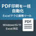 フォルダ内PDFファイル一括印刷プリント君(Excelマクロ版) PDF大量印刷を自動化する業務効率化ツール 本ツールは、指定フォルダ内の PDF をまとめて自動印刷できる Excelマクロ(.xlsm)形式の業務効率化ツールです。 事務作業・現場業務などで、PDFを頻繁に印刷する方を想定しています。 「印刷自動」「印刷手動」の2モードを搭載しており、 大量のPDF印刷作業でも効率的に処理できます。 ■ 主な機能 ・PDFの 自動印刷(プリンタ設定済みの場合は連続印刷) ・PDFの 手動印刷(Adobe Acrobat Readerで個別に印刷) ・取込フォルダを登録し、起動時に自動読み込み ・プリンタ設定画面へワンクリックでアクセス ・印刷状況表示(自動印刷時はプログレスバー表示) ・取扱説明書PDFをワンクリック表示 ・印刷中は操作ロックで誤操作を防止 ■ 使い方の流れ xlsmファイルと取扱説明書PDFを 同じフォルダ に保存 Excelを開き マクロを有効化 プリンタ設定を実行 取込フォルダを登録 「印刷自動」または「印刷手動」を選択 「印刷実行」ボタンで印刷開始 ※Adobe Acrobat Reader が起動中の場合は警告表示があります ※指定フォルダにPDFが無い場合も警告が表示されます ■ 使用方法動画(約2分) 実際の操作手順を動画で確認できます。 ※ YouTube(限定公開) https://youtu.be/-D8WAyrJuE8 ■ 対応環境 ・Windows 10 / Windows 11 ・Microsoft Excel(マクロ有効) ・Adobe Acrobat Reader(必須) ■ 同梱ファイル ・pdfファイル印刷フォーム.xlsm ・pdfファイル印刷フォーム取扱説明書.pdf ・プリント君操作マニュアルビデオ20251104.mp4 ■ サポートについて 本商品の基本的な操作方法や、 取扱説明書に記載された内容に関するご質問には対応いたします。 本商品は、業務委託や常駐サポートを前提とした商品ではありません。 以下の内容についてはサポート対象外となります。 ・プリンタ固有の設定・不具合 ・ご利用環境に起因する問題 ・VBAコードの改変・カスタマイズ ・業務内容に合わせた個別調整 ■ 免責事項 本ツール使用による損害については責任を負いかねます。 ご利用前に必ず動作確認を行ってください。 また、プリンタ固有の設定や、 個別環境に起因する不具合については サポートおよび補償の対象外となります。 ■ 返金・キャンセルについて 本商品はデジタルコンテンツ(ダウンロード商品)の性質上、 ご購入後の返金・キャンセルには原則として対応しておりません。 内容・動作環境・注意事項をご確認のうえ、 ご納得いただいた上でのご購入をお願いいたします。 ■ 注意事項 本ツールの再配布・転載は禁止されています。 ■ よくある質問(抜粋) Q:Excelでマクロが無効になります A:「コンテンツの有効化」をクリック、または 右クリック → プロパティ →「許可する」にチェックしてください。 Q:Adobe Acrobat Reader を開いていると印刷できません A:一度終了してから再実行してください。 Q:自動印刷が始まりません A:既定プリンタの設定をご確認ください。 ■ 追記 ※ 本商品には、購入者限定の使用方法動画(mp4)も同梱されています。 オフライン環境でもご確認いただけます。