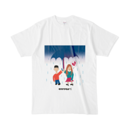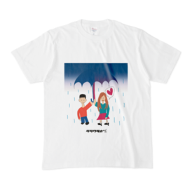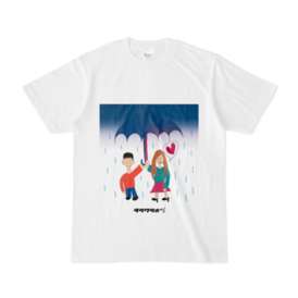 Tシャツ - XL - 白《商品説明》 商品名 相合傘 制作者 くまのプーシャン(さいたま新都心) 《つくり手さんから》 雨の中、一つの傘で相合傘をしているラブラブな男女を描きました。 この商品はpixivFACTORYで作られた商品です。サンプル画像は完成イメージのため、実物と異なる場合があります。