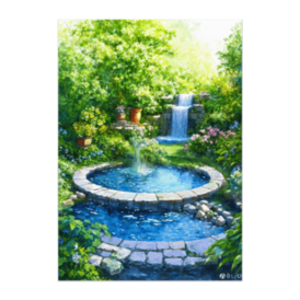ポスター - B2この商品はpixivFACTORYで作られた商品です。サンプル画像は完成イメージのため、実物と異なる場合があります。 やわらかな陽光に包まれた庭園の中で、 静かに水を湛える噴水を描いた水彩油彩風アートです。 瑞々しい緑、澄んだ水面、穏やかな空気感が調和し、 見る人の心をそっと落ち着かせてくれます。 自然を感じるインテリアとして、 リビングや寝室、作業スペースにもおすすめの一枚です。