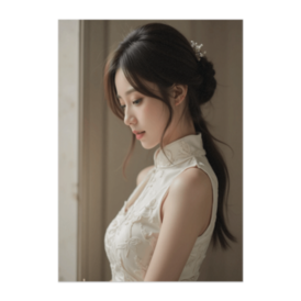 ポスター - B2この商品はpixivFACTORYで作られた商品です。サンプル画像は完成イメージのため、実物と異なる場合があります。 窓から差し込む自然光に照らされた、白いチャイナドレスの横顔ポートレート。 控えめな表情とやわらかな陰影が、静かで上品な癒しを感じさせます。 落ち着いた空間に溶け込む、穏やかな一枚です。