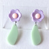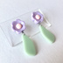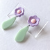 パステルパープルの花がかわいいアクセサリーです。 ゆらゆら揺れるグリーンは葉をイメージしています。 写実よりもキャッチーさ、かわいさに寄せたアクセサリーにしました。 【金属アレルギー対策に関する情報】 ・使用している金属は《全て》サージカルステンレス →この商品は《サージカルステンレス316》を使用しています ・メッキ不使用 ・アクセサリー全体に金属アレルギー低減剤を塗布 →(株)サフィックス様のスウェットバリア®︎を使用しています 金属アレルギーの方にも比較的安心してご着用いただけます。 アレルギーのためにアクセサリーを避けている方へのプレゼントにもおすすめです。 --- サイズ: 3.8cm 重さ: 3g パーツ: サージカルステンレス