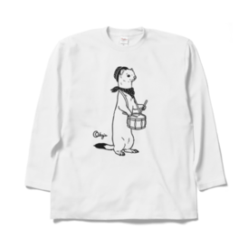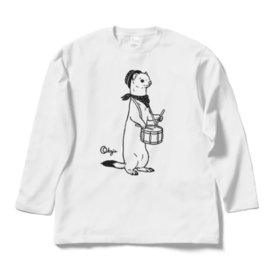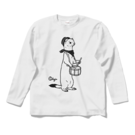 ロングスリーブTシャツ - XL - ホワイトマーチングドラムを楽しく叩く、おしゃれなおこじょくんです♪