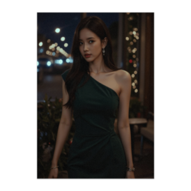 ポスター - B2この商品はpixivFACTORYで作られた商品です。サンプル画像は完成イメージのため、実物と異なる場合があります。 街の光がにじむクリスマスイブ。 深みのあるグリーンドレスが、夜景と美しく調和する大人のポートレートです。 静かな強さと洗練された雰囲気を感じさせる一枚。