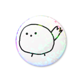 ホログラム缶バッジ - 56mm「がんばりすぎた日の、ふにゃふにゃシマエナガ。あなたの心に、そっと寄り添う脱力感。」 「完璧じゃないから、愛おしい。そんな一羽ができました。見てるだけで、力が抜けます」
