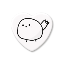 ハート缶バッジ - 57 × 52.5mm「がんばりすぎた日の、ふにゃふにゃシマエナガ。あなたの心に、そっと寄り添う脱力感。」 「完璧じゃないから、愛おしい。そんな一羽ができました。見てるだけで、力が抜けます」