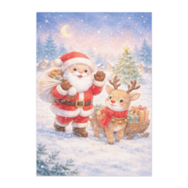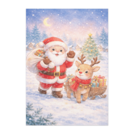ポスター - B2この商品はpixivFACTORYで作られた商品です。サンプル画像は完成イメージのため、実物と異なる場合があります。 雪が舞う夜、サンタとトナカイが並んで歩く あたたかなクリスマスのワンシーン。 月明かりと灯りに包まれた街並み、 やさしい表情と物語を感じる水彩風イラストです。 見ているだけで心が和らぐ、 冬の夜に寄り添うクリスマスアートとしておすすめの一枚です。
