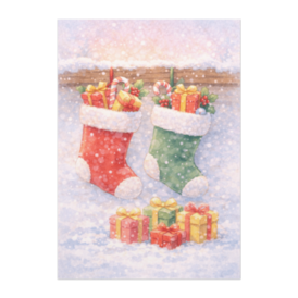 ポスター - B2この商品はpixivFACTORYで作られた商品です。サンプル画像は完成イメージのため、実物と異なる場合があります。 雪の中に並ぶクリスマスソックスと、たくさんの贈りもの。 音のない朝の、やさしく穏やかな時間を描いた水彩タッチの一枚です。 主張しすぎない色合いで、 リビングや玄関、子ども部屋にも自然に溶け込みます。 冬のインテリアとして長く楽しめるクリスマスアートです。