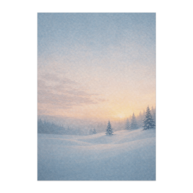ポスター - B2この商品はpixivFACTORYで作られた商品です。サンプル画像は完成イメージのため、実物と異なる場合があります。 夜明け前の淡い光が、 雪原と森をやさしく包み込む北欧風の冬景色。 クリスマスの朝を思わせる静かで希望のある一枚。 空間をやさしく明るくしてくれる、大人向けポスターです。