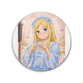 缶バッジ - 76mmAIイラストの缶バッジ。マイキャラ・ヘットのガーリー系ロリータワンピース姿。少し恥じらいながら可愛らしくふるまう。 この商品はpixivFACTORYで作られた商品です。サンプル画像は完成イメージのため、実物と異なる場合があります。