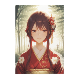 ポスター - B2この商品はpixivFACTORYで作られた商品です。サンプル画像は完成イメージのため、実物と異なる場合があります。 柔らかな自然光の中で、穏やかに微笑む振袖姿の女性を描いたポスターです。 赤の振袖に上品な花柄をあしらい、清楚で親しみやすい雰囲気に仕上げました。 お部屋に飾るだけで、落ち着きと華やかさを添えてくれる一枚です。 和風インテリアや季節の飾りとしてもおすすめです。