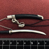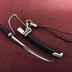 全長:74mm 刃渡:50mm アクリルケース付き 刀身:鋼材削り出し パーツ:鉄、真鍮、アルミ 柄:羊革 鞘:(中芯)ポリプロピレン樹脂、(外皮)鮫革 日本刀を模した金属製の本格派ストラップです。 同一の規格のものが無い一部廃材を使用した手作り生産の為、工程上刀身に細かい傷などがありますが、またそれも味わいのある一点モノとなります。 日本刀はとても魅力的ですが、価格やサイズの問題で敷居が高くなかなか手を出し辛いもの。 そんな日本刀を身近に感じられるように小さなストラップにしました。 金具を外してミニドールの持ち物にもできます。 守り刀としての御守りやちょっとした贈り物、 外国人の方へのお土産などにもオススメです。 ※注意事項※ 刃物の分類となりますので取扱いには十分にご注意ください。 使用方法が正当・不当問わず如何なる重大な事故、事件、トラブルが発生した場合においても当サークルは責任は負いません。自己責任の上で管理をお願い致します。 1)鑑賞用ですが刃物の分類となります、先端が鋭くなっておりますので怪我やトラブルにご注意下さい。 2)刃の部分は錆びに弱い作りとなっておりますので、濡らしたり素手で触った後は布などで水分や指紋はよく拭き取って下さい。 また、抜刀時に強い力を掛けますと鎖部分が千切れ、破損や怪我の原因になりますので、抜刀や納刀はゆっくり行って下さい。 3)鞄やベルトなどの外側に付けることを想定しております、スマートフォンなど、ポケットに入れるものには付けないで下さい、怪我や画面に傷をつける恐れがあります。 4)航空機内や公共施設の立ち入りにおいて、危険物として持ち込みを制限される可能性があります。十分ご注意下さい。 5)銃刀法の規制対象(刃渡り55mm)以下のサイズではありますが、所持の状況(袖の下に隠し持つなどの怪しまれるような携帯方法)によっては軽犯罪法が適用される可能性があります