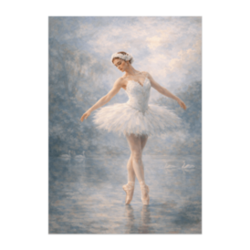 ポスター - B2この商品はpixivFACTORYで作られた商品です。サンプル画像は完成イメージのため、実物と異なる場合があります。 静と動のあいだに佇む白鳥のバレリーナ。 均衡を保ちながら舞う姿が、内面の集中と美しさを映し出します。 柔らかな色彩と油絵風の筆致で描かれた、 クラシックで気品あるバレエアートです。