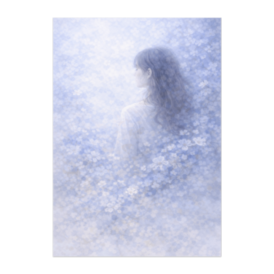 ポスター - B2この商品はpixivFACTORYで作られた商品です。サンプル画像は完成イメージのため、実物と異なる場合があります。 淡い青の花々と光に包まれ、静かに佇む女性の横姿を描いたイラストです。 視線を外し、動きを抑えた構図が、距離や余白、内省的な時間を感じさせます。 柔らかな色彩とにじむ光の表現により、空間そのものが感情を映すような一枚です。