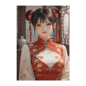 ポスター - B2この商品はpixivFACTORYで作られた商品です。サンプル画像は完成イメージのため、実物と異なる場合があります。 赤と金を基調とした華やかなチャイナ服を身にまとい、正面から穏やかに微笑む女性を描いたアートポスターです。 伝統的な刺繍模様と整った佇まいが、格式と優雅さを感じさせます。 クラシカルな色彩と落ち着いた表情が調和し、空間に凛とした美しさをもたらす一枚です。 アジアンテイストや上品なインテリアのアクセントとしておすすめです。