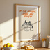 This charming cat and food wall art features a cute hand-drawn cat enjoying comfort food, paired with the playful quote “If I’m Moody, Give Me Foody.” Inspired by Japanese illustration aesthetics and Nordic minimal design, this artwork brings warmth, humor, and coziness into your space.