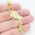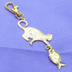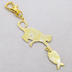 ステンレス製 ゴールドカラー 魚を狩る猫のシルエットモチーフのキーホルダー ラメ入り ステンレス板 金具変更可