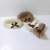 ホワイトとモカブラウンをベースにしたシンプルなニット帽・マフラーセットです。グログランのミニリボンにミニパールをデコレーションし、上品キュートに仕上げました。※ニット帽&マフラー以外のお洋服/ぬいぐるみ等は付属しません。 ・exマスコット(10cmぬい)、ほわぬい(8cmぬい)どちらも着用できます。 ○サイズ ニット帽・被り穴直径約6cm、平置きよこ×たて=約9×5cm マフラー・約26~28cm ※手編みのため個体差があります。 〇その他 ・材料は多少変更になる可能性があります。 ・ニット帽の折り返し部分は接着剤で固定しています(縫い付けなし)。強い力でひっぱったりしないようご注意ください。 ・サイズ感は、ツイステEXぬいぐるみをモデルに製作しております(ほわぬい・ピコぬいも着用可能確認済)。 ・髪の毛や頭のデザインによって被せづらい場合がございます。ぬいちゃんの形状を今一度ご確認ください。 ※商品画像中のぬいぐるみ等小物は付属しません。 ※発送方法は追跡機能付きのクリックポストを予定しています。