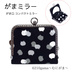 片手で開くがま口手鏡「がまミラー」ねこたまMIX(ごましお)|押し口金で開閉スムーズ|直径8cmの大きな鏡|指輪が入る内ポケット付|使う人に優しいユニバーサルデザイン|ギフトにも むにがま