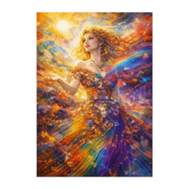 ポスター - B2この商品はpixivFACTORYで作られた商品です。サンプル画像は完成イメージのため、実物と異なる場合があります。 強い太陽光と虹色の光が交差する空間に立つ、幻想的な女性を描いたアート作品です。 ドレスは花びらや色彩が溶け合うように広がり、動きとエネルギーを感じさせます。 鮮やかで前向きな印象の色彩は、空間に華やかさと希望をもたらします。