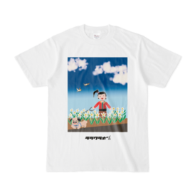 Tシャツ - XL - 白《商品説明》 商品名 水仙の日 制作者 s(広島) 《つくり手さんから》 水仙花畑で、犬の散歩しているところを描きました。 この商品はpixivFACTORYで作られた商品です。サンプル画像は完成イメージのため、実物と異なる場合があります。