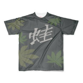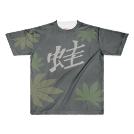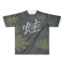 フルグラフィックTシャツ - S - 両面印刷限定100枚のオリジナル蛙Tシャツです。 人気クリエイターライドレックスが冬休み返上で作り上げたおしゃれなデザイン。表面に蛙の漢字が描かれ、背面には蛙の左目が描かれています。文字も手描きです。自然を愛するあなたにピッタリ。刺さる人には刺さりまくること間違いなし。キャンプや釣りなどのアウトドアから日常使いまで、速乾性のポリエステル素材で快適に過ごせます。地の色は画像では深緑に見えていますが実際には黒です。 サイズは4種類(S, M,L, XL)から選んでください。 この商品はpixivFACTORYで作られた商品です。サンプル画像は完成イメージのため、実物と異なる場合があります。