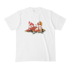 Tシャツ - XL - 白ヨハクのオリジナルキャラクター、ヨハクックのイラストを使用したTシャツです。 ハムが大好物な彼らは、人々の食卓やキッチンで、ちょっとした悪さをします。 しかし、彼らに決して悪意はありません。目の前の大好物に目は釘付けで、うっかり口にくわえてしまっただけです。 この商品はpixivFACTORYで作られた商品です。サンプル画像は完成イメージのため、実物と異なる場合があります。