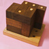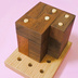 パズラートシリーズ第3弾 5本の木の森パズル 夏木智のオリジナルパズルです L型のトリミノに各立方体の中央を貫通する穴をあけます。すると、3枚目の写真のように穴のないピースを含めて9種類のピースができます。空いている穴の合計は長さが15です。そこで、長さが3の木を五本用意します。この5本の木をまず、例えば、2枚目の写真のように、地面に立てます。この木に穴を通して、9ピースをくみ上げて写真のように立方体の森を作ってくださいというパズルです。 最初の木の立て方は6種類あります。また森の形は正方形以外にもいろいろ作れます。穴のある8ピースだけを使ってもいろいろな造形が可能です。 大きさは完成した立方体の1編が9センチです。銘木を使って、しかも名工の手によって非常に正確に作られていますので、完成するとまさにアートです。 箱はありません。ピースと土台だけのお届けになります。製作数は1個だけです。