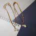 【頒布品概要】 左右でデザインが異なるアシンメトリーチェーンに二粒の淡水パールが輝き揺らめきます。 長アズキチェーンは様々な素地によく馴染み、ボックスチェーンは力強く長アズキチェーンとトップチャームを繋ぎます。 2種のチェーンに支えられる2粒の淡水パールは、中央固定。メガネ留めにてしっかり取り付けました。 アジャスターエンドパーツにも極小の淡水パールを使用したスペシャルな一本です。 淡水パールの自然なフォルムと、ひと粒ごとに宿る個性的な輝きをお楽しみください。 世界にひとつだけの、あなただけのパールをお届けします。 シンプルなニットやTシャツにサッと合わせるだけで、ワンランク上のコーデになります。 もちろんきれいめなブラウスなどにもよく合いますよ。 カジュアルからオフィススタイルまで どんなシーンにも、どんな服装にも馴染みやすく、シンプルで飽きずに使えるアイテムです。 全ての金属素材にはステンレス304の24kgpのチェーンを使用しております。 変色しにくく、金属アレルギーの方もお使い頂けます。シンプルなデザインなので、デイリーにお使いいただけます。 淡水パールのチャームはメガネ留めで繋げているため、お使い中にトップが外れにくい仕上げになっています。 メガネ留めの芯材にはステンレスワイヤー(304 24kgp)を使用しております。 一見すると華奢な見た目ですが、ステンレス素材持ち前の丈夫さで、長くご愛用いただけるよう製作いたしました。 留め具には大きめのカニカンとアジャスターを使用し、片手でも簡単に着脱できるよう工夫しました。 淡水パール及びステンレス素材は一般的に汗や皮脂汚れによる変色・劣化に強く、適切なお手入れを行うことで長期的に色味の美しさを保つことができます。 長くお使いいただくために、ご使用後にアクセサリー用のクロス等で付着物を除去することをお薦めします。