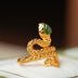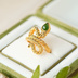 <受注制作>蛇のリング - 持ち主の個性とスタイルを引き立てる R447 ※シルバーだけでなく、K10、K18、PT900などでも制作が可能ですので、ぜひご相談ください。 蛇からインスピレーションを受けてデザインしました。このリングは、蛇の本体に独自のディテールが施されており、さらに翡翠が頭部にセットされた洗練された作品です。このジュエリーは、神秘的な魅力と自然の美しさを融合させた一品です。翡翠は古来より幸運と調和を象徴する石として知られ、その深い緑色がリング全体に生命力を与えています。蛇の曲線は優雅でありながら力強く、指に巻きつくようにデザインされており、まるで指先に自然の力を宿すかのようです。このリングを身につければ、日常にスピリチュアルなエレメントが加わり、持ち主の個性とスタイルを引き立てることでしょう。大切な人への贈り物としても、自分自身へのご褒美としても、特別な存在感を放つアイテムです。感じることができます。 制作期間について: 制作期間: 1〜3週間 私たちは、できるだけ早くお手元に商品が届くよう、丁寧かつ迅速に制作を行っていますので、ご理解いただけますようお願い申し上げます。 ※もしお急ぎの場合は、お気軽にご相談ください。お客様のご要望に応じて納期を調整することも可能です。 素材:スターリングシルバー、ヒスイ サイズ:翡翠6.2㎜*4.5㎜ ----------------------------------------------------------------------------- ※ 製品のカスタマイズが可能 当店では、お客様がより自分らしいジュエリーを手に入れることができるよう、既存の商品をカスタマイズすることが可能です。 例えば、お好みの宝石に変更することや、デザインパーツを追加することができます。また、新しいデザインのジュエリーをフルオーダーすることも可能です。 お客様のご要望に合わせたご提案を行っておりますので、お気軽にご相談ください。私たちは、お客様が長く愛用できるジュエリーを提供することをお約束いたします。 ------------------------------------------------------------------------------ ※注意事項 制作開始後の返金や発送後の返品・返金には対応できません。 モニター環境により、実物と色合いが異なる場合があります。 温泉では硫化のリスクがあるため、入浴時には外すことをお勧めします。 メッキ製品は汗や水に弱いため、使用後は柔らかい布で拭き取ってください。 酸化を防ぐため、空気やほこりに触れないように保管してください。