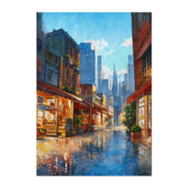 雨上がりの街角 ― 水彩油彩ミックス風シティスケープ