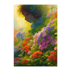 ポスター - B2この商品はpixivFACTORYで作られた商品です。サンプル画像は完成イメージのため、実物と異なる場合があります。 花々の色彩に溶け込みながら、 静かに想いを巡らせる横顔。 水彩油彩風のタッチで描かれた、 自然と感情が重なり合う幻想的な一瞬。 やさしく空間を彩る、落ち着いた雰囲気のアート作品です。