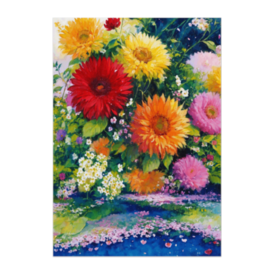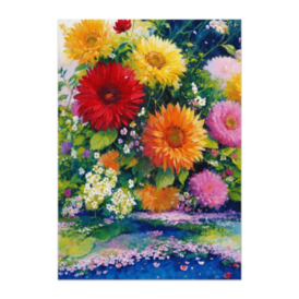 ポスター - B2この商品はpixivFACTORYで作られた商品です。サンプル画像は完成イメージのため、実物と異なる場合があります。 ひまわりを中心に、色とりどりの花が咲き誇る庭園。 水彩油彩風の筆致が、 花の生命感とやさしい空気を豊かに描き出します。 空間を明るく彩る、 温もりのあるフラワーアートです。