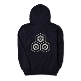 直江兼続 家紋 三つ盛亀甲に花菱 パーカー 紺に黒