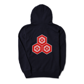 直江兼続 家紋 三つ盛亀甲に花菱 パーカー 紺に赤