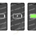 充電切れと充電中のスマホ画面のイラストセット(電池切れ・充電中・フル充電)