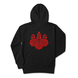 豊臣秀吉 豊臣秀頼 家紋 五七の桐 パーカー 黒に赤