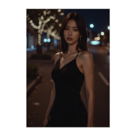 夜景とブラックドレスのシネマティックポスター