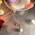 【商品説明】 ご覧いただきありがとうございます。 紫色の可憐な蝶と、光を反射して煌めくクリアチャームを組み合わせた、幻想的な雰囲気のネックレスです。 この作品のポイント 表情が変わるデザイン: アジャスターの長さを変えることで、チェーン上の蝶の位置が微妙に変化します。その日のコーディネートや襟元の開き具合に合わせて、ベストなバランスで楽しめます。 透明感のあるチャーム: 存在感のあるクリアパーツが、光を浴びてキラキラと輝き、お顔周りを華やかに演出します。 こだわりのディテール: アジャスターの先にも小さな蝶のパーツをあしらい、後ろ姿まで抜かりなく可愛らしい仕上がりです。 【サイズ】 全長:約45cm(アジャスターで調節可能) 【ご購入時の注意点】 ハンドメイド作品のため、既製品のような強度はございません。優しくお取り扱いください。 お使いの端末により、写真と実物の色味が多少異なって見える場合がございます。 #ハンドメイドアクセサリー #蝶々ネックレス #幻想的 #大人可愛い# 推し#蓮の結晶 カラー...ゴールド系移ろう蝶と煌めく花の結晶。長さ調節で表情が変わるハンドメイドネックレス