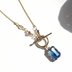 ドットーレをイメージした、前留め式のネックレスです。 高品質のグラデーションのガラスストーンを使用しています。 ゴールドカラーを基調に一部シルバーカラーのパーツを使用しています。 チェーンは変色のしにくいk16gpのものを使用しました。 撮影状況やお使いの端末の設定等により、画像と実物の色合い等に違いが出る場合があります。 ご不明な点はお気軽にお問い合わせください。 チェーンの長さ:約48cm ガラスペンダントトップの大きさ:約1.6cm 金具の色:ゴールド(一部シルバー) *ご注意* *素人によるハンドメイド作品です。 *ハンドメイド作品ですので、同じ品を複数ご購入頂いた場合でも少しずつ個体差がある場合があります。 *金属を使用しております。金属アレルギーの方のご着用はご注意ください。 *一つ一つ丁寧に作成しておりますが、既製品と比べて強度や完成度が劣る場合がございます。ご了承の上お取り扱いにはご注意ください。 *水濡れや直射日光の当たる場所に放置しますと劣化が早まる恐れがありますのでご注意ください。