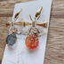 ※非公式イメージアクセサリーです。 『bubuSoL(ブブソル)』はイメージカラーを用いたシンプルで普段使いもしやすいアクセサリーをコンセプトに制作しているハンドメイドサークルです。 +++++++++++++++++++ 崩壊:スターレイルのファイノン・モーディスをイメージして作成したイヤリング/ピアスです。 ■デザイン説明 【ファイノン】【モーディス】 クリア×ゴールドのリボンのトップパーツと、それぞれの色味をイメージしたキャンディのようなガラスビーズの組み合わせが可愛いデザインです。 カラーのグラデーションが美しく、片耳ずつキャラのイメージで制作しましたのでテンションも2倍上がるアイテムです。 がっつりモチーフではなくさりげなく色味を取り入れて一日の気分が少しだけ上がるようにとの思いを込めて制作しました。 ▼写真の色味と実際の色味が多少異なる場合があります。 なるべく近づけているつもりですが、光の当たる角度などによってもニュアンスが変わるカラーも使用しております。 その点ご了承をお願いします。 ▼金具は在庫状況により多少変更になる場合があります。 +++++++++++++++++++ ◆発送について◆ 基本的にクリックポストでの発送となります。 ◆ご注文を頂く際のお願いです◆ ・素人のハンドメイド品であり既製品のように完璧でないことをご理解の上ご購入ください。 ・ディスプレイに使用している小物については付属しません。 ・液晶等の環境によって色味などが異なる場合がございます。 ・商品到着時の破損や汚損を除き、返品・交換は致しかねます。 不明な点などがありました際はお気軽にメッセージからお問い合わせください。