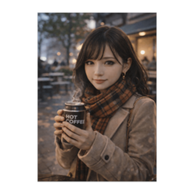 ポスター - B2この商品はpixivFACTORYで作られた商品です。サンプル画像は完成イメージのため、実物と異なる場合があります。 冬の街角カフェで温かいコーヒーを手にした女性を描いたポスター作品。 柔らかな光と落ち着いた雰囲気が、お部屋を優しく彩ります。 インテリア・カフェ風空間・癒しのアートとしておすすめです。