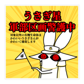 ステッカー - 100 x 100 (mm)この人間チャンからはおニクや甘味、地球の知識を吸い取っている最中なので オサワリ厳禁であるという旨を伝えるかわいいうさぎさんのステッカーです。 軍部区画長をはじめとした軍部区画個体達がこのステッカーを貼られた人間チャンの近辺をじんわりと警護。 うさぎ星に帰投したり、人間チャンの巣に前線基地を作ったり うさぎ迷彩状態で人間チャンを意味もなく見つめたりします。 この商品はpixivFACTORYで作られた商品です。サンプル画像は完成イメージのため、実物と異なる場合があります。